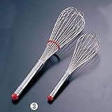 全長(mm):540●号数:18●特長:独自の特殊樹脂を注入のため、柄の中に水がはいりにくく衛生的です。円盤状のヘッド部は、ひっかかりがあるためホイップしても、手がすべる心配がありません。特殊加工技術により、柄と線材が固定され、さらに抜けにくい構造になっています。※#18〜#30まではリング付です。